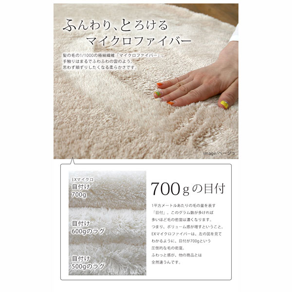 EXマイクロファイバーラグマット(MS300) 140Rcm(円形)はこちら EXマイクロファイバーラグマット(MS300) 140×200cmはこちら EXマイクロファイバーラグマット(MS300) 200×200cmはこちら EXマイクロファイバーラグマット(MS300) 200Rcm(円形)はこちら EXマイクロファイバーラグマット(MS300) 200×250cmはこちら 商品説明 商品名 EXマイクロラグ(MS-300) 素材 表面:ポリエステル100% (マイクロファイバー糸) 中材:ウレタンフォーム(7mm) 裏面:不織布 ドット 耐熱性滑りにくい加工(PVC) パイル長 約20mm カラー アイボリー/ベージュ/ブラウン/サンドベージュ/マスタードイエロー/オリーブイエロー/セイジグリーン/ライムグリーン/クローバーグリーン/オリーブ/トープ/セピア/ダークグレー/グレー/インディゴ/コバルトブルー/モルディブ/アクアスカイ/ピーチベージュ/モーブ 機能 床暖・ホットカーペット対応、裏面滑りにくい加工、ウォッシャブル 重量 約4.70kg 生産国 中国(企画は日本) サイズ 200×200cm ゴミが少ないよう配慮して、簡易包装でお届けします。