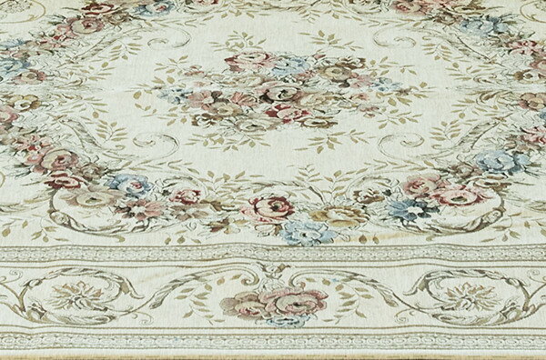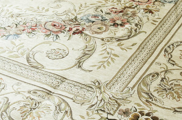 備考 手洗いOK・ホットカバーOK【ゴブラン織 優美な空間 200×200cm 】 白をベースとして優美な空間を花で埋めつくす アラベスク模様が美しい 伝統的なペルシャ柄をゴブラン織りで作りました ゴブラン織 シェニール ラグ 優美 な 空間 火貼り と 職人による折り返しの縫製 ” 火貼り ”という 製法 で 裏生地 を張り合わせ 一枚 布のような 美しい 仕上がりを実現。