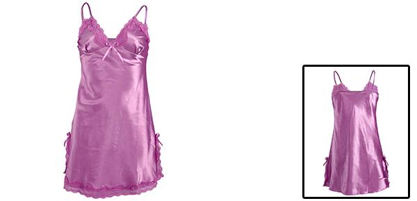【属性5】レディースセクシーなサテンのVネックラインの花柄のレーストリムサイドスリットスパゲッティストラップナイトスリップドレス。